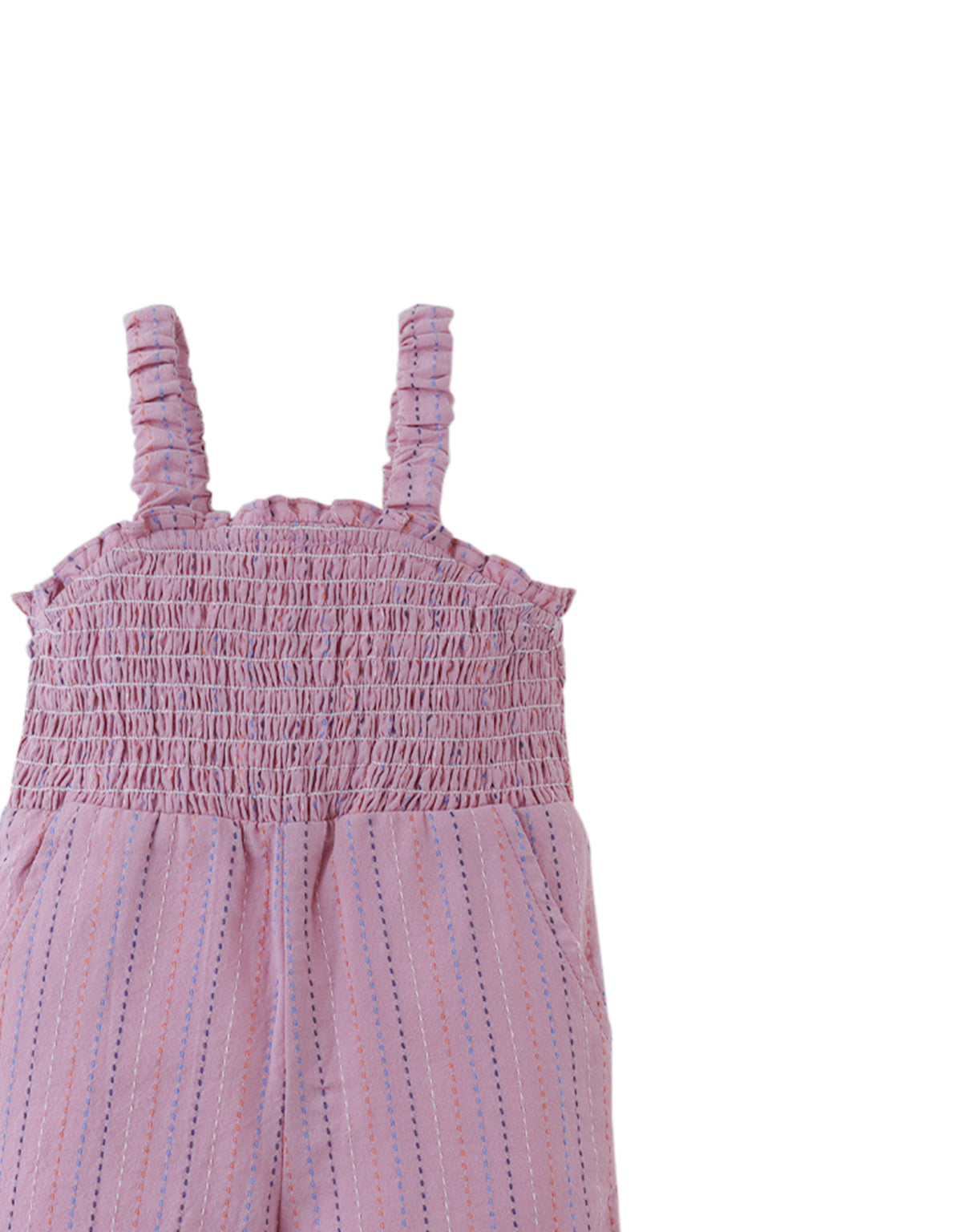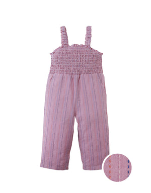 BABY LEIGH BROKEN STRIPED DOBBY JUMPSUIT WITH SMOCKED TOP