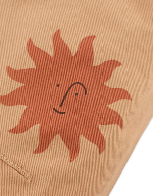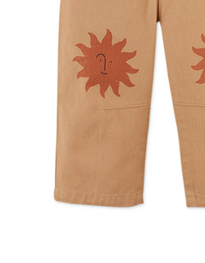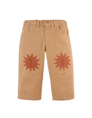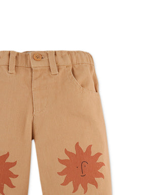 Let him bask in the warmth of adventure with our khaki Niccolo pants with sun print details, tailored for comfort and perfect for playful days under the sunshine.