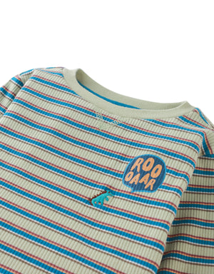 BABY OLAF LONG SLEEVES T-SHIRT STRIPED MEADOW WITH EMBROIDERED DINO AND PRINT DETAIL