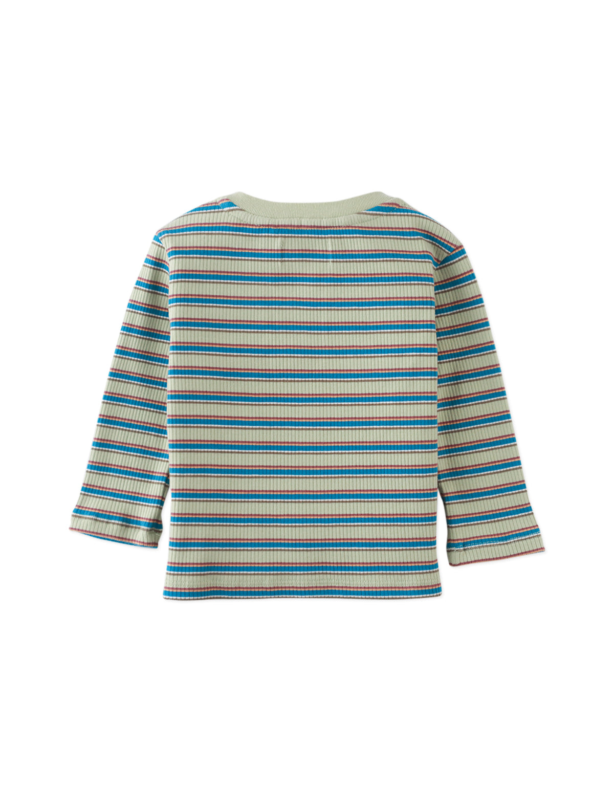 Add a playful retro touch to your child’s wardrobe with the Baby Olaf Long Sleeves T-Shirt in Striped Meadow, featuring an embroidered dino and fun print details for endless adventure-ready style!