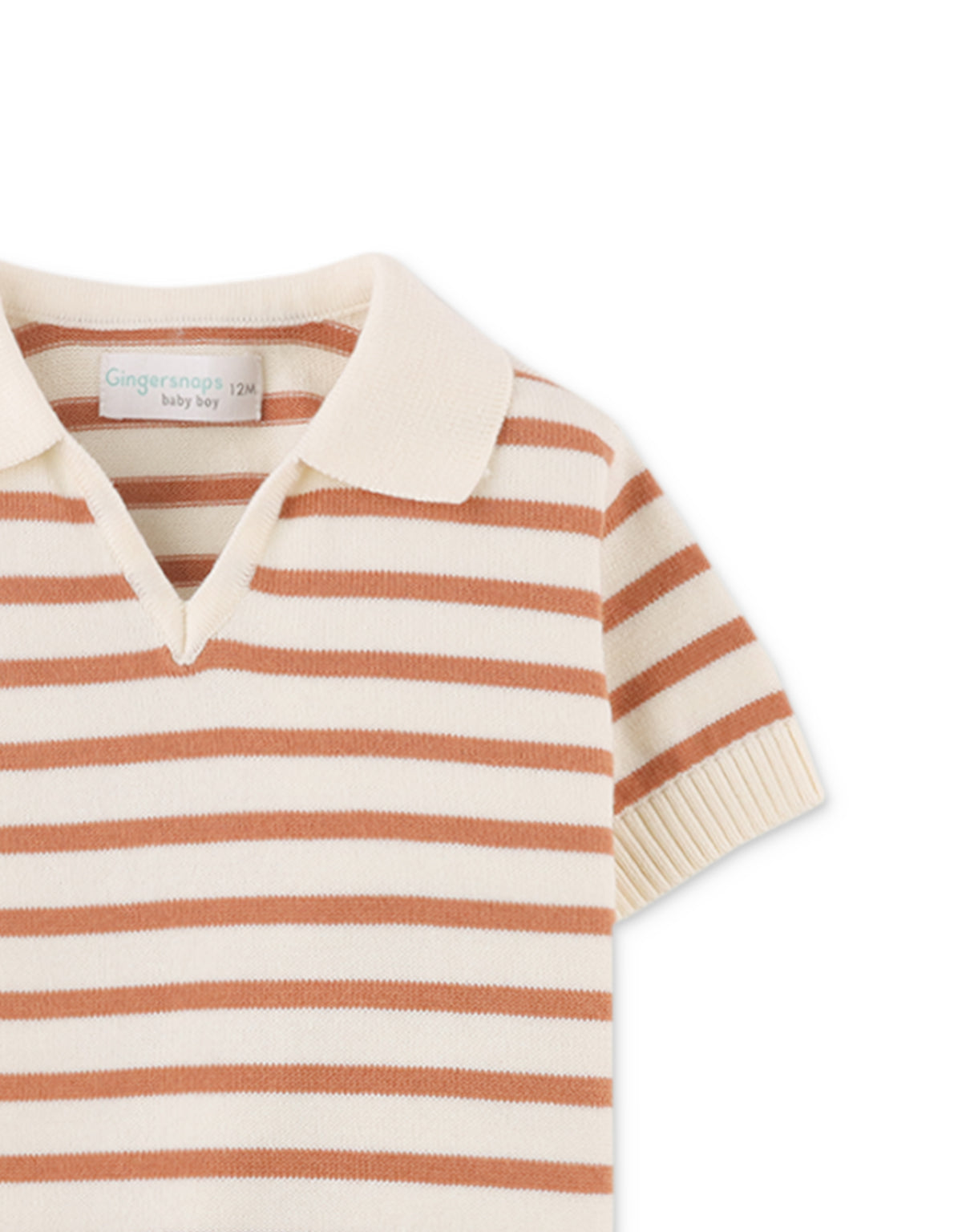Make your little one the trendiest tot on the playground with the Ricci striped collared top made of comfy knit fabric.