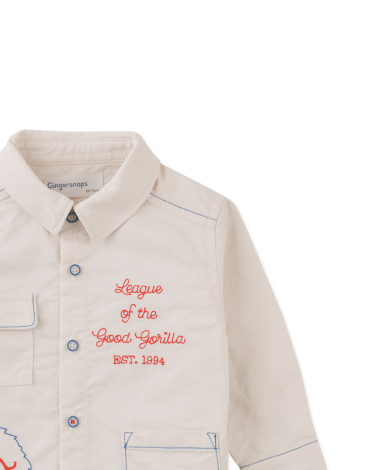 The Baby Richard Long Sleeves Button Down Shirt in Eggnog, with its cool embroidered details, offers a stylish yet easy-to-wear option for your little boy, perfect for everything from school days to weekend adventures.