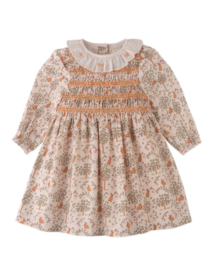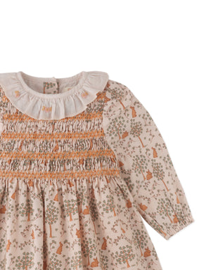 BABY TRIXIE SMOCKED DRESS BUNNYMEADOWS WITH RUFFLE COLLAR AND ROSE BULLION EMBROIDERY DETAILS
