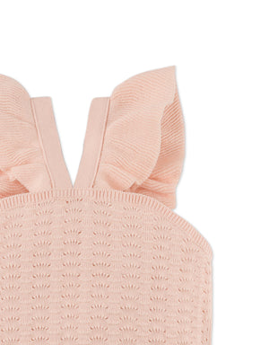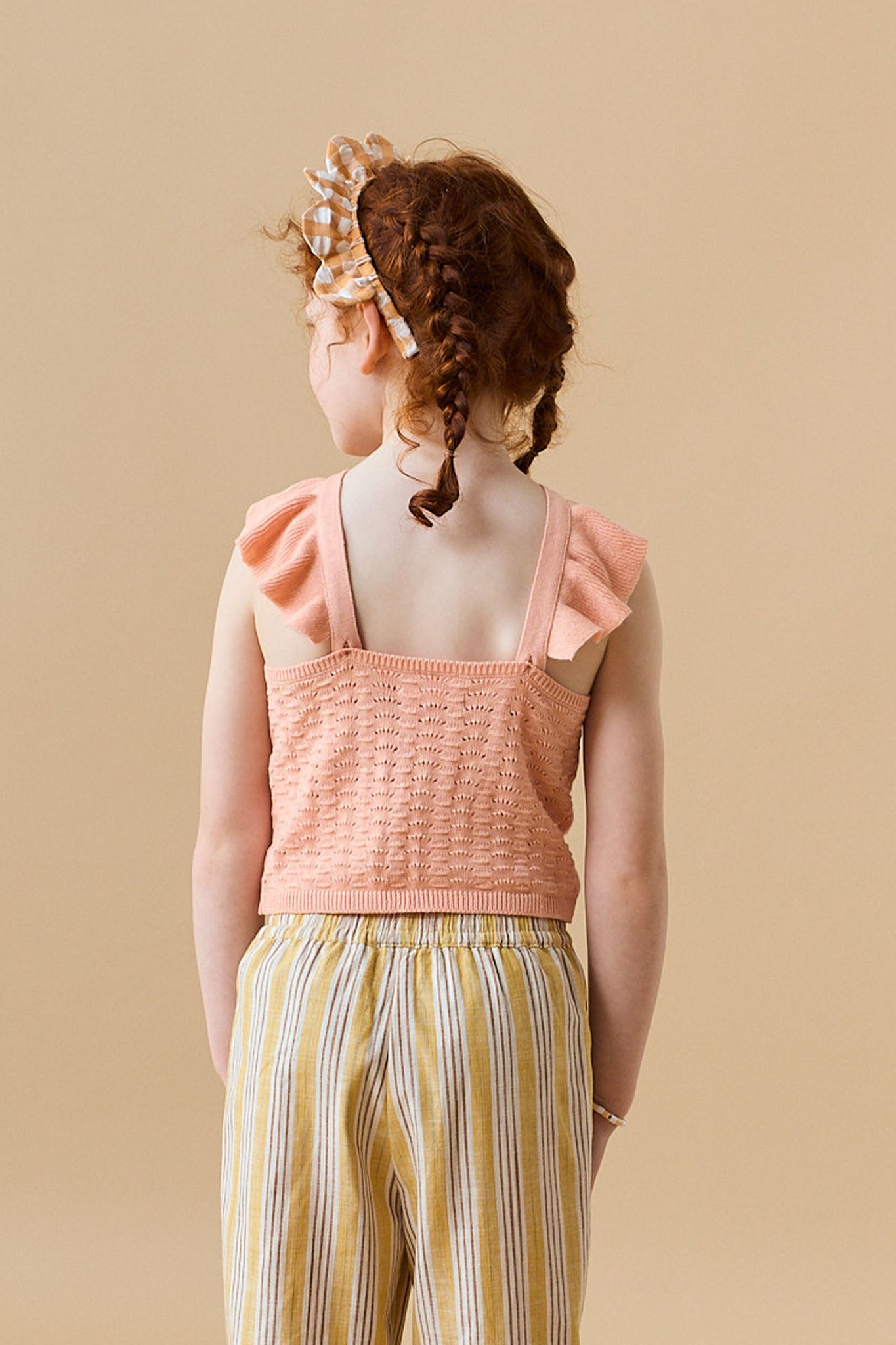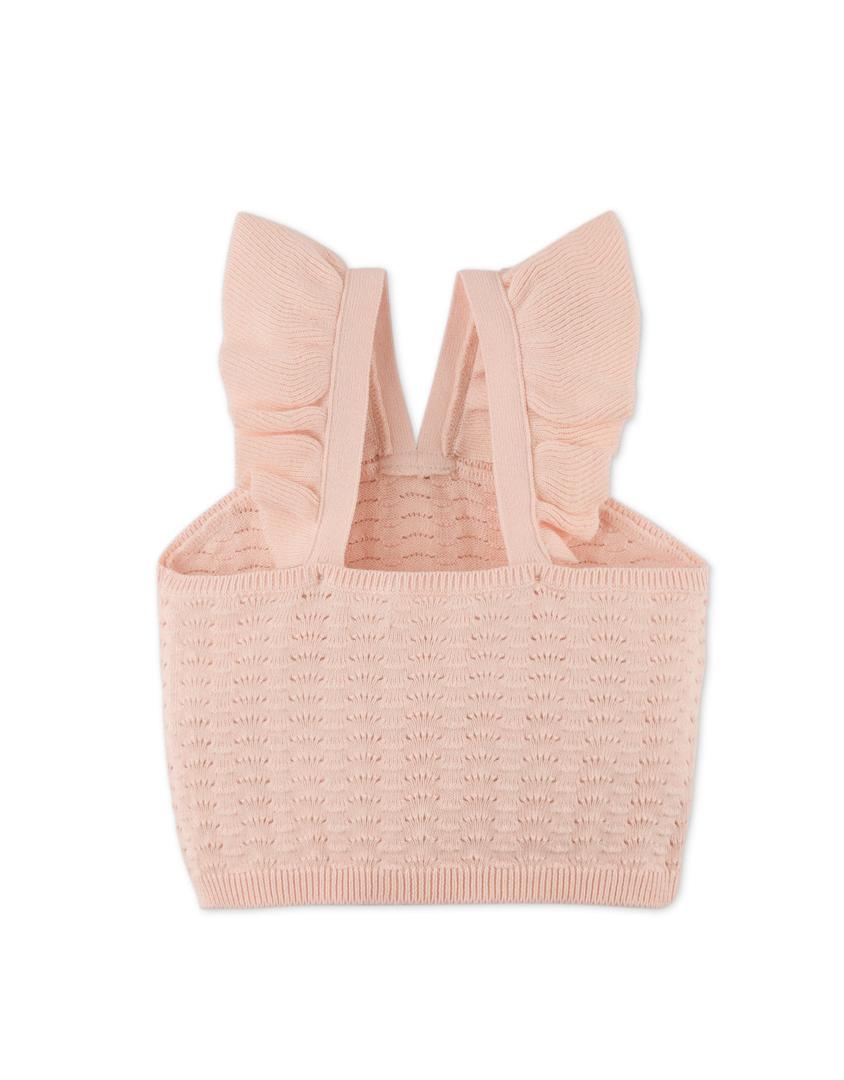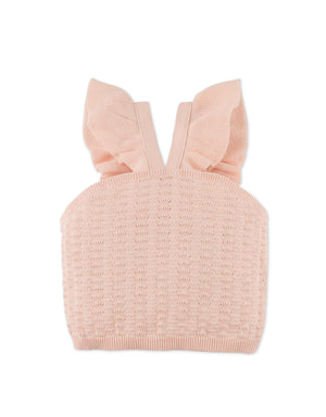 Elevate her charm with playful sophistication in our Beatrice knitted sleeveless top adorned with ruffles, adding a flutter to her every step.