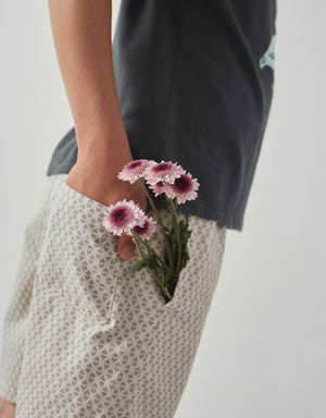 These classic Bermuda shorts feature an abstract print on soft twill fabric, blending playful energy with a refined silhouette.