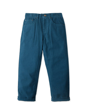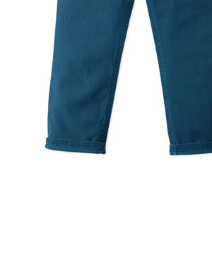 These 5-pocket pants in a deep blue shade offer both versatility and style to any outfit.