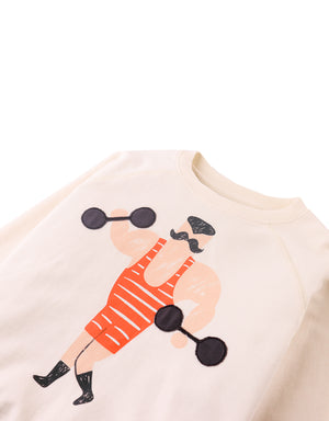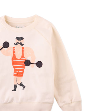Empower playtime with our Arlo raglan pullover with muscle-man details, designed to fuel his adventures with strength and style.