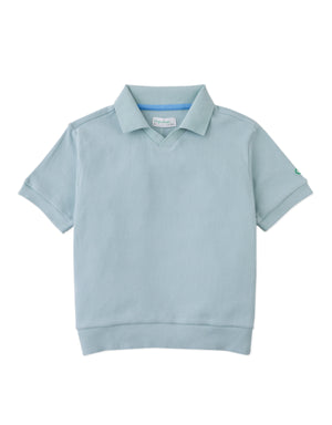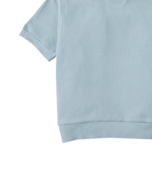 Comfy never looked so cool! The Asher V-neck waffle polo combines a relaxed fit and effortlessly serene blue for a touch of sophistication