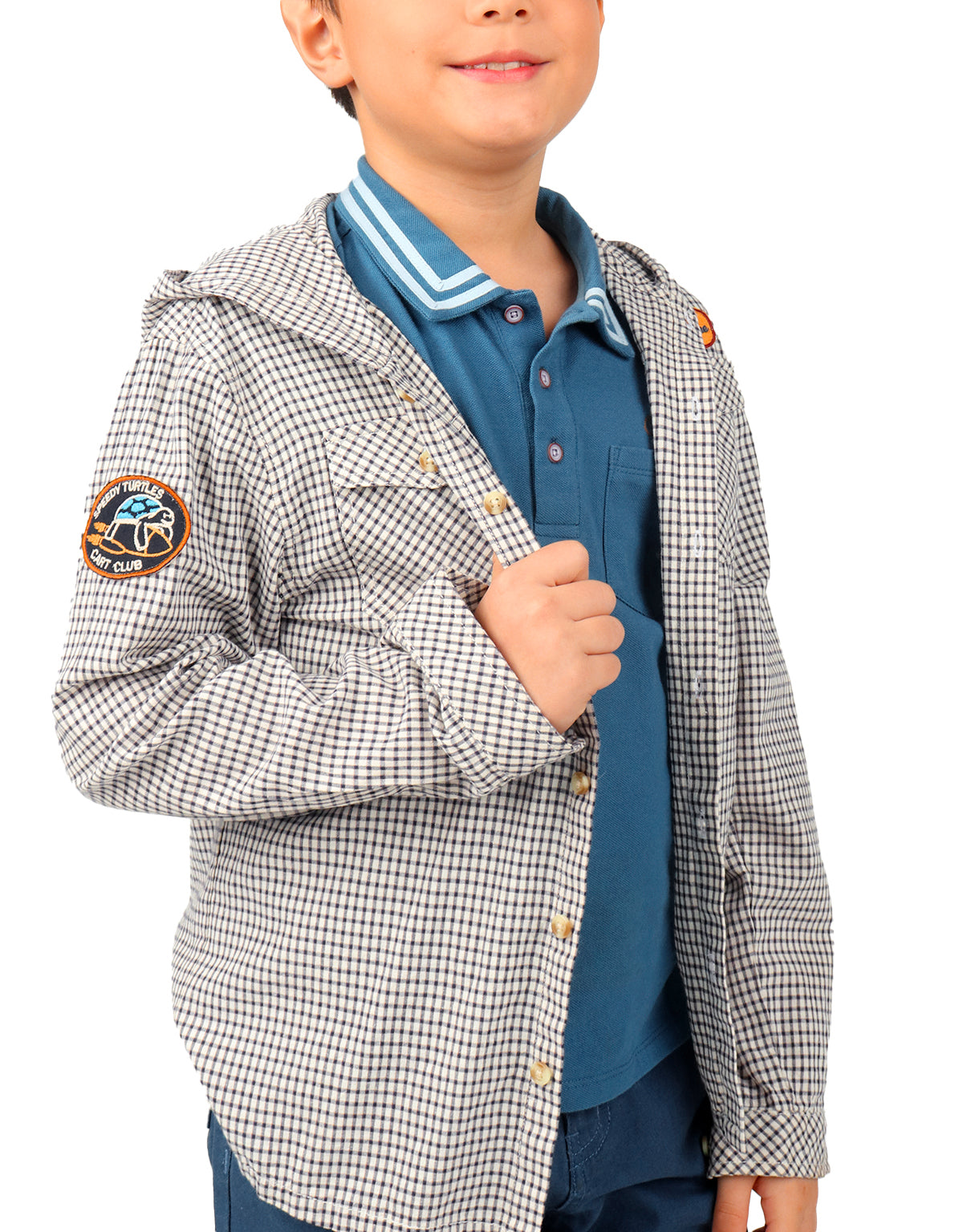 BOYS CHECK HOODED LONG SLEEVES SHIRT