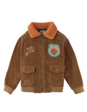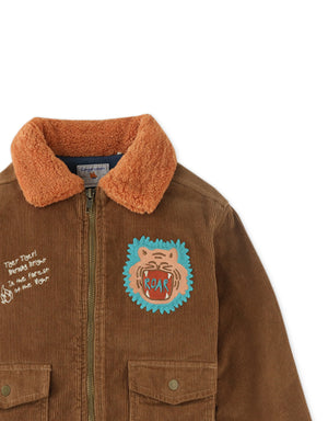 BOYS EMBROIDERED CORDUROY JACKET WITH SHERPA COLLAR
