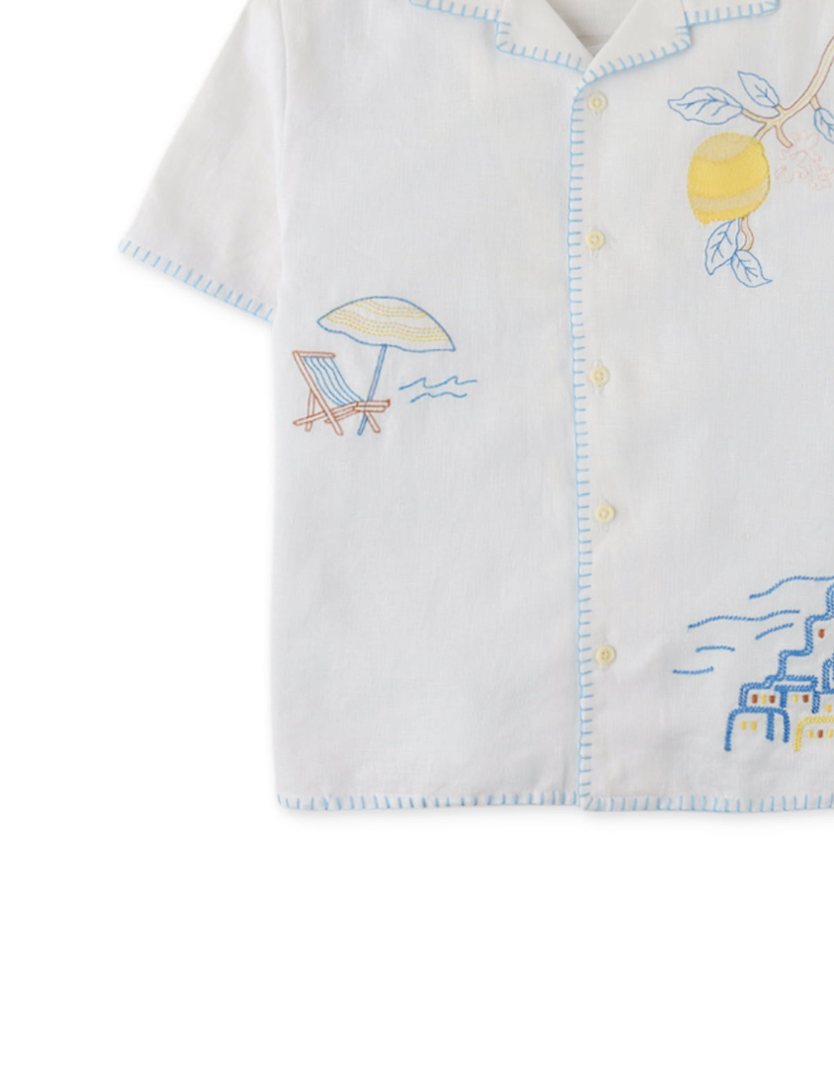 BOYS EMBROIDERED LINEN SHORT SLEEVES SHIRT