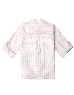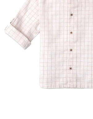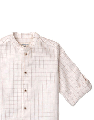 He'll look adorable in this cotton linen polo shirt with the cutest grid print!