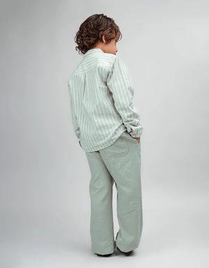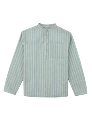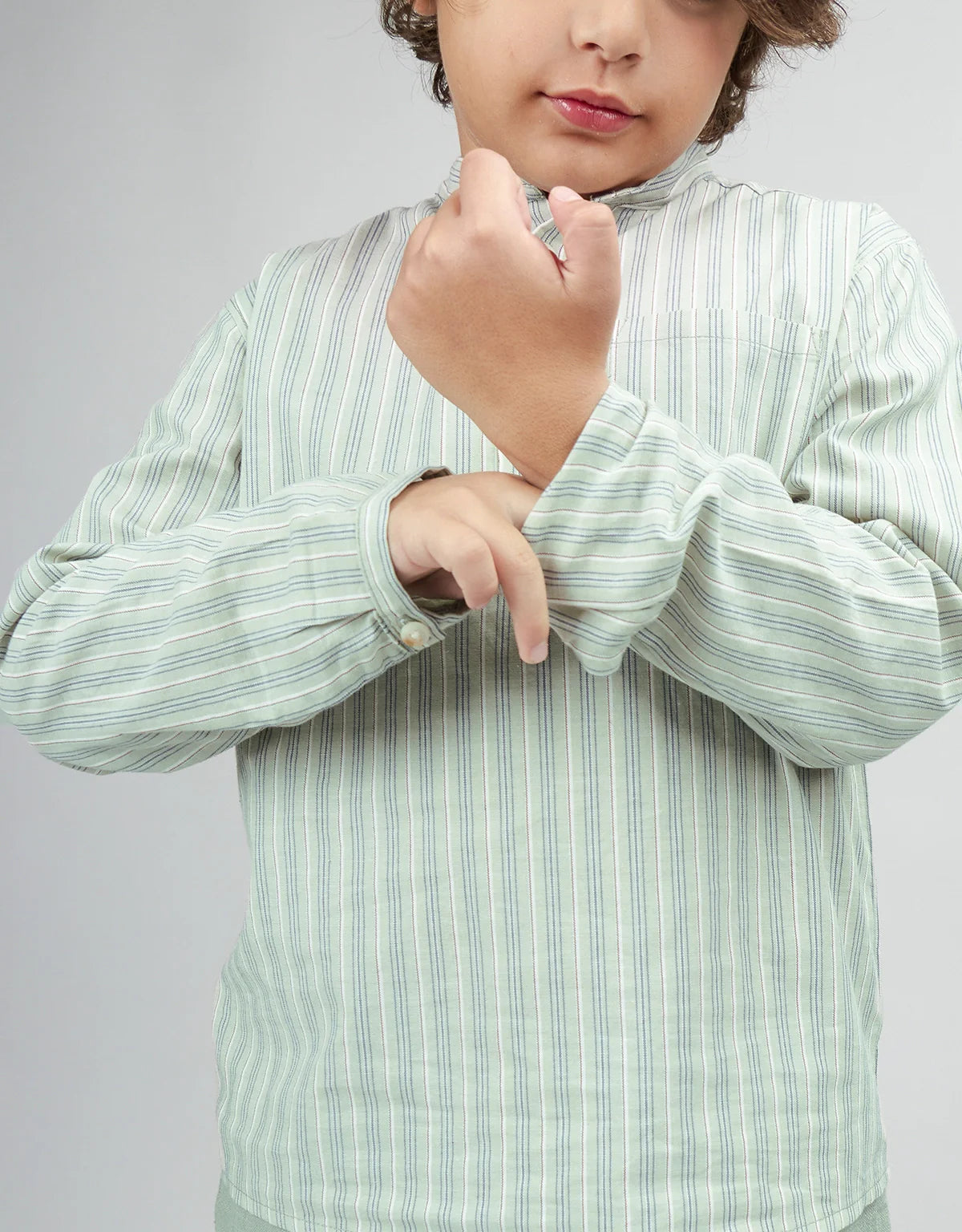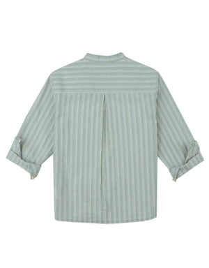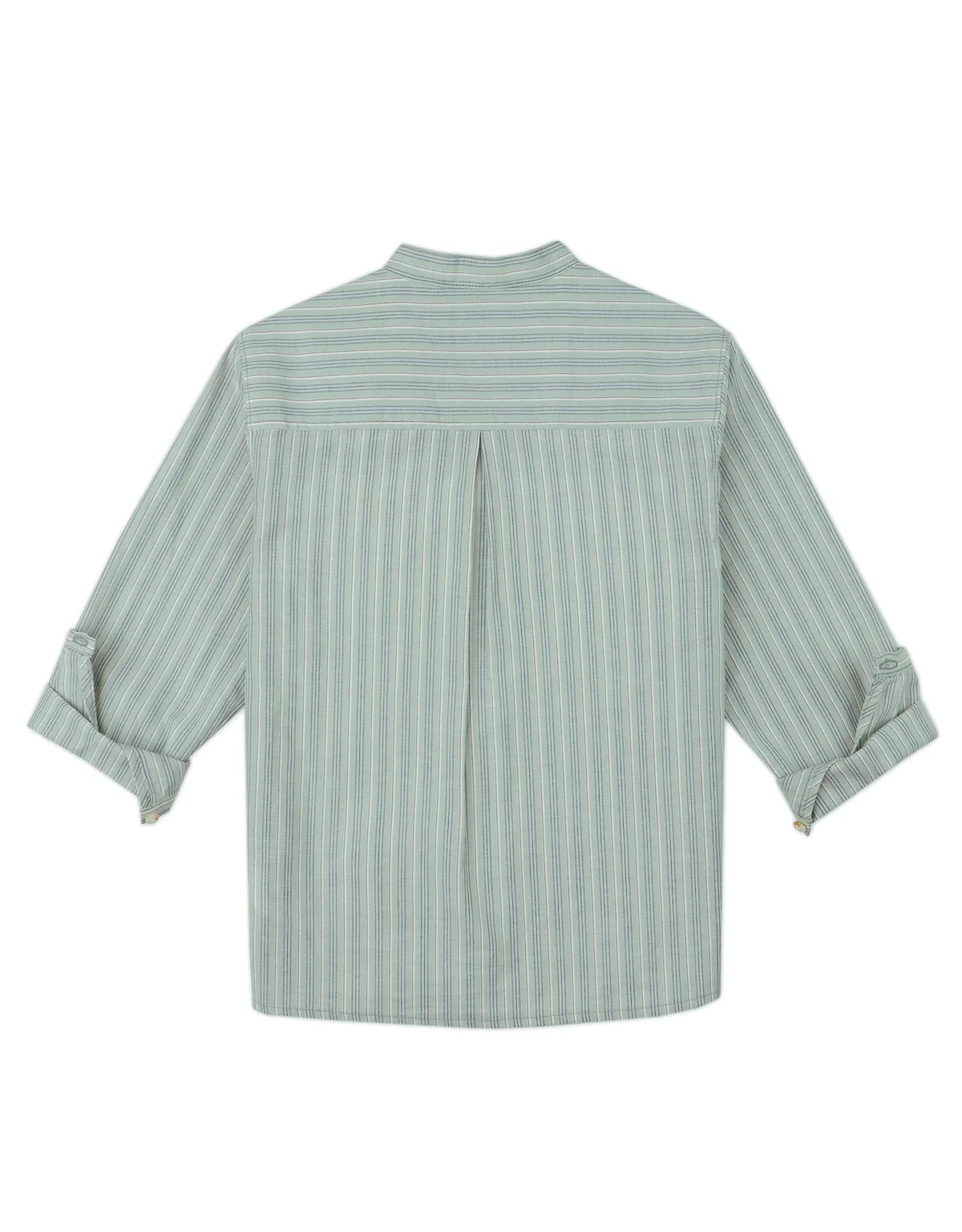 BOYS STRIPES HALF PLACKET ORIENTAL COLLAR SHIRT