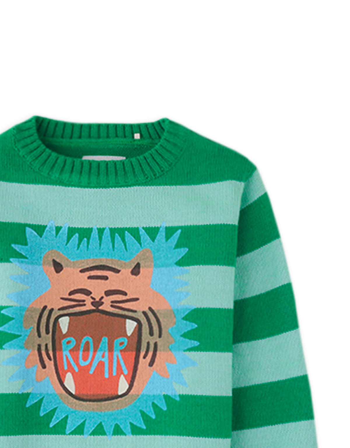BOYS TIGER ON STRIPES KNITTED PULLOVER