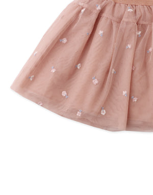 Fit your little fairy in a dreamy tulle skirt adorned with intricate floral embroidery and a soft yoke for dainty grace.