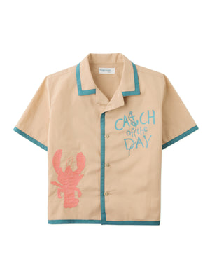 The Carlos button-down boasts playful lobster detail, perfect for adding a touch of nautical fun to his everyday look. This comfy and cool shirt is perfect for all-day adventures.