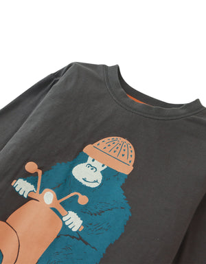 Soft, comfy, and unforgettable, our Charlton Pullover Tee featuring a playful Gorilla on wheels graphic is your little one's new go-to for chill days.