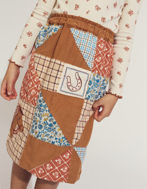 Perfect for make-believe adventures on the farmhouse grounds, the Dakota Midi Skirt brings a country charm to your little ones ensemble with its patchwork and charming horse details.