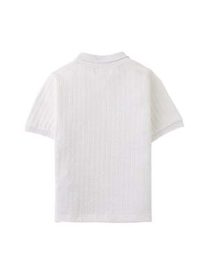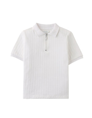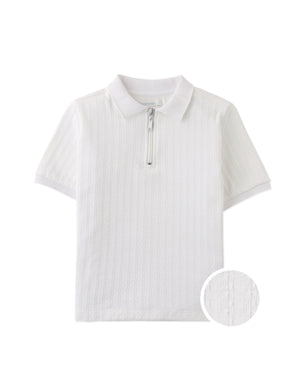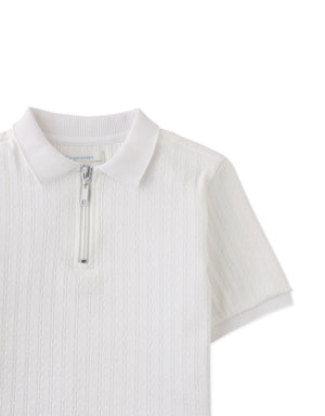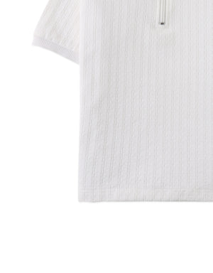 This zipped cable jersey short sleeve polo shirt brings a sophisticated twist to casual style, available in beige or white for easy pairing with any wardrobe