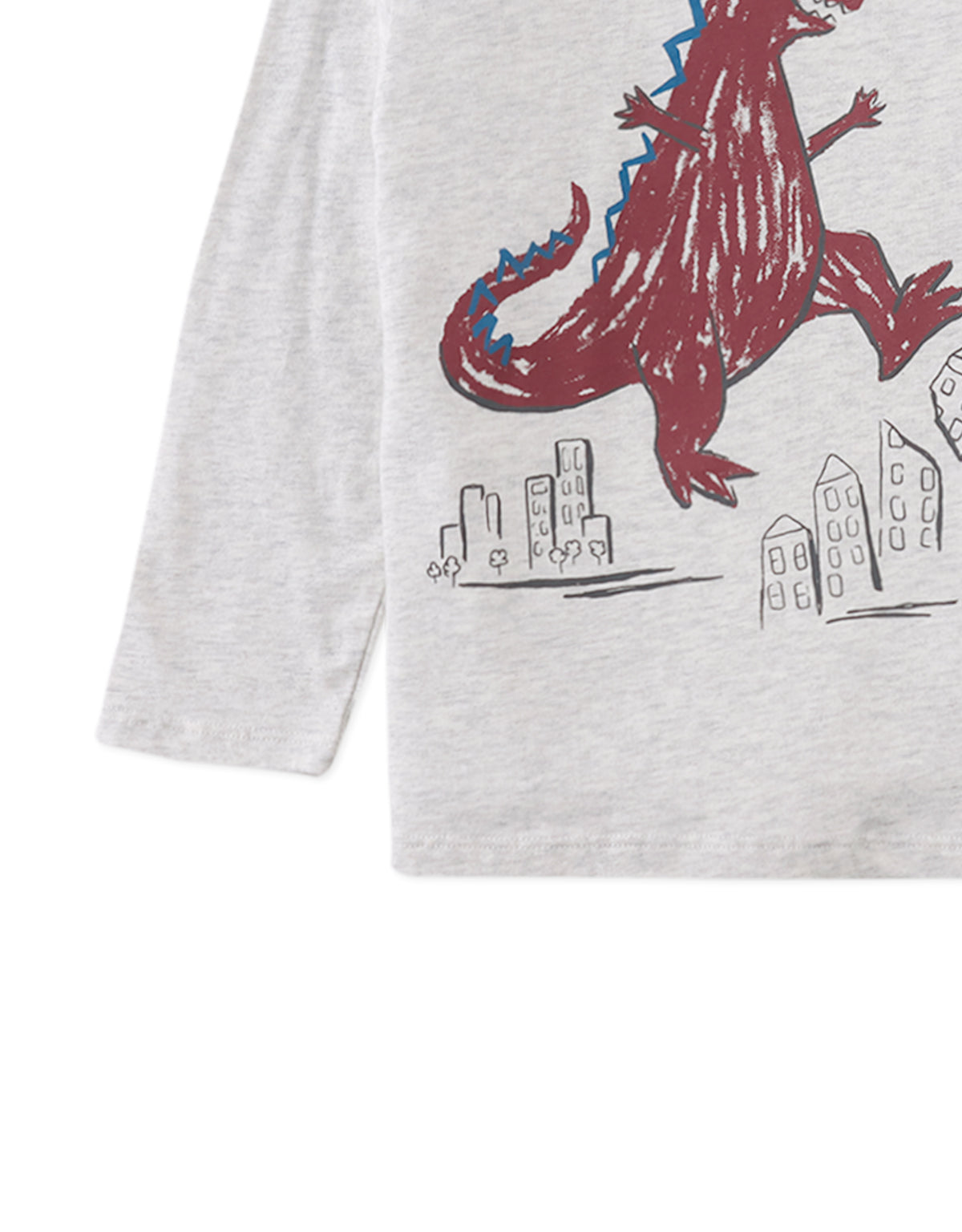 Make a roaring statement with our Dmitry Long Sleeves T-Shirt in Gray Melange, featuring a fierce Dino Smash print.