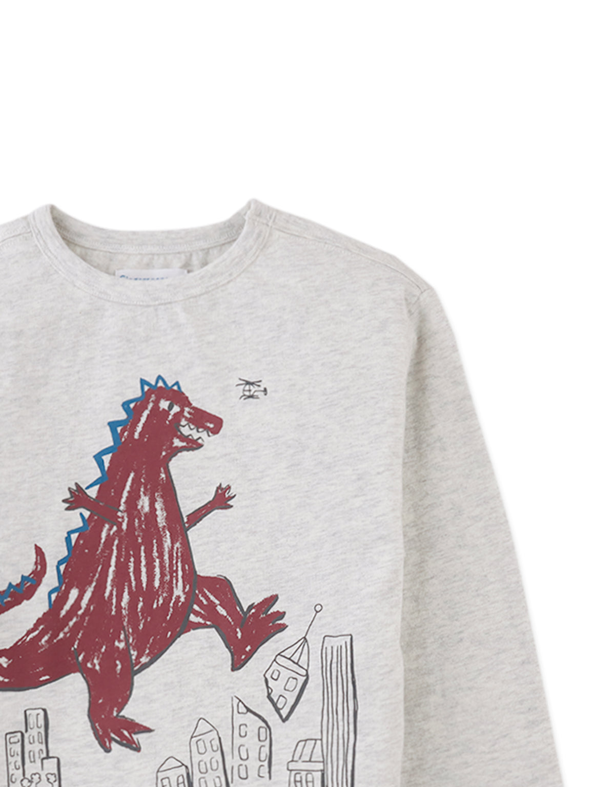 DMITRY LONG SLEEVES T-SHIRT MELANGE WITH DINO SMASH PRINT