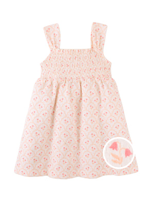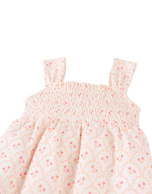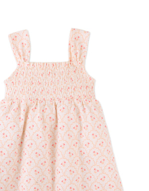 Brimming with softness, this strappy dress gathers warmth and whimsy with its smocked bodice and breathable texture, perfect for your little one's everyday adventures.