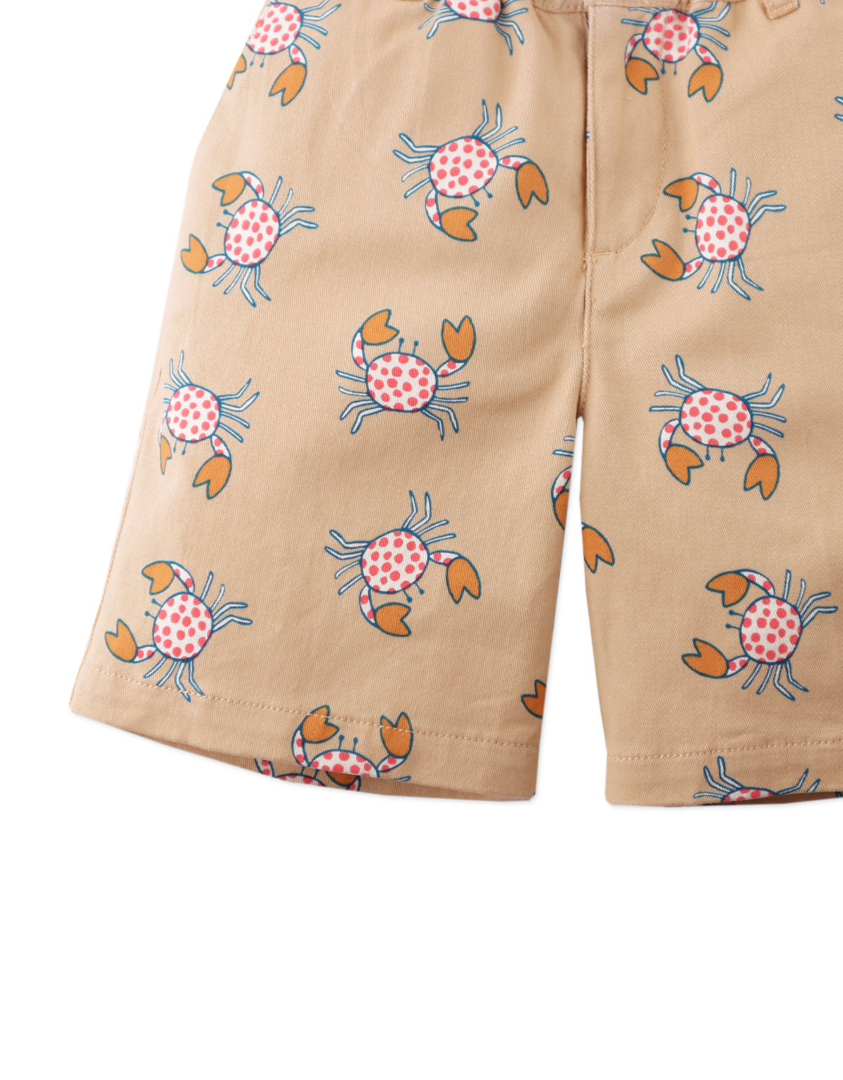 Our playful Enzo shorts feature a cool crab print, perfect for beach adventures or backyard explorations. These comfy shorts are sure to turn heads wherever he goes.