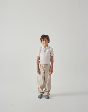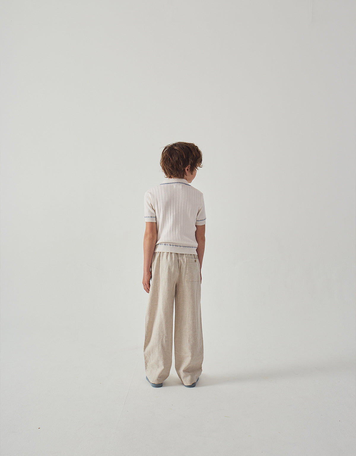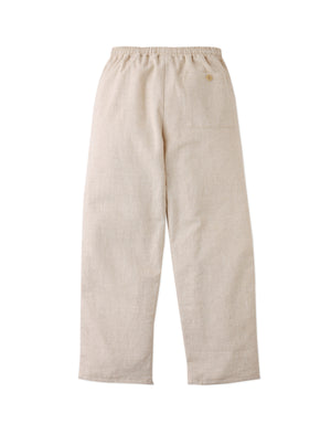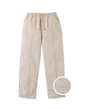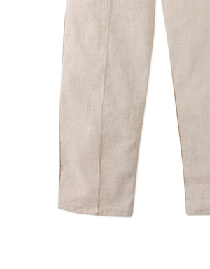 Tailored for easy wear, these natural colour fixed-fold ramie blend drawstring trousers offer a breezy feel with a structured touch, perfect for any occasion.