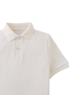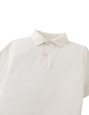 Fit your little one in this unique short sleeved polo shirt with an irregular rib texture and GG logo embroidery, available in offwhite or blue for a casual yet stylish look.