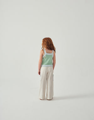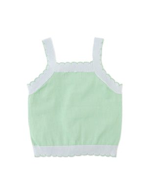 Outfit your little one in this delightful combed cotton knit top, featuring bird cross-stitch embroidery and scalloped ribbed straps and edges, adding a touch of whimsy to their wardrobe.