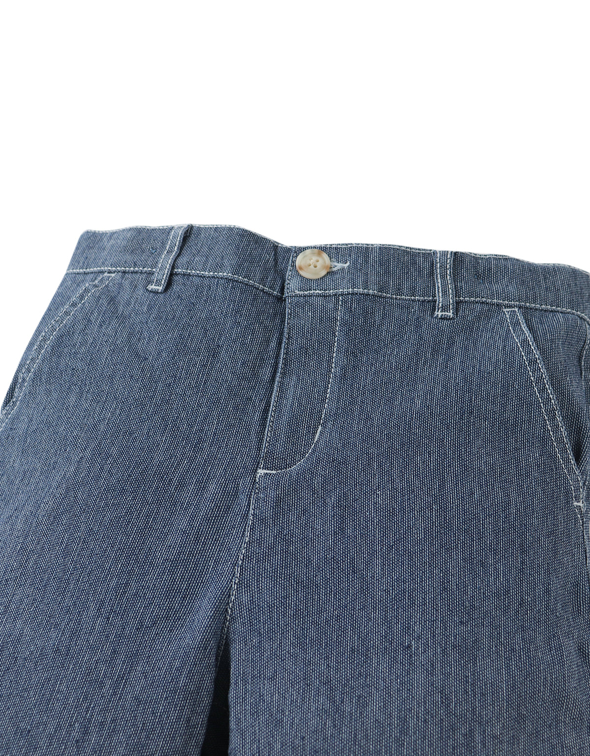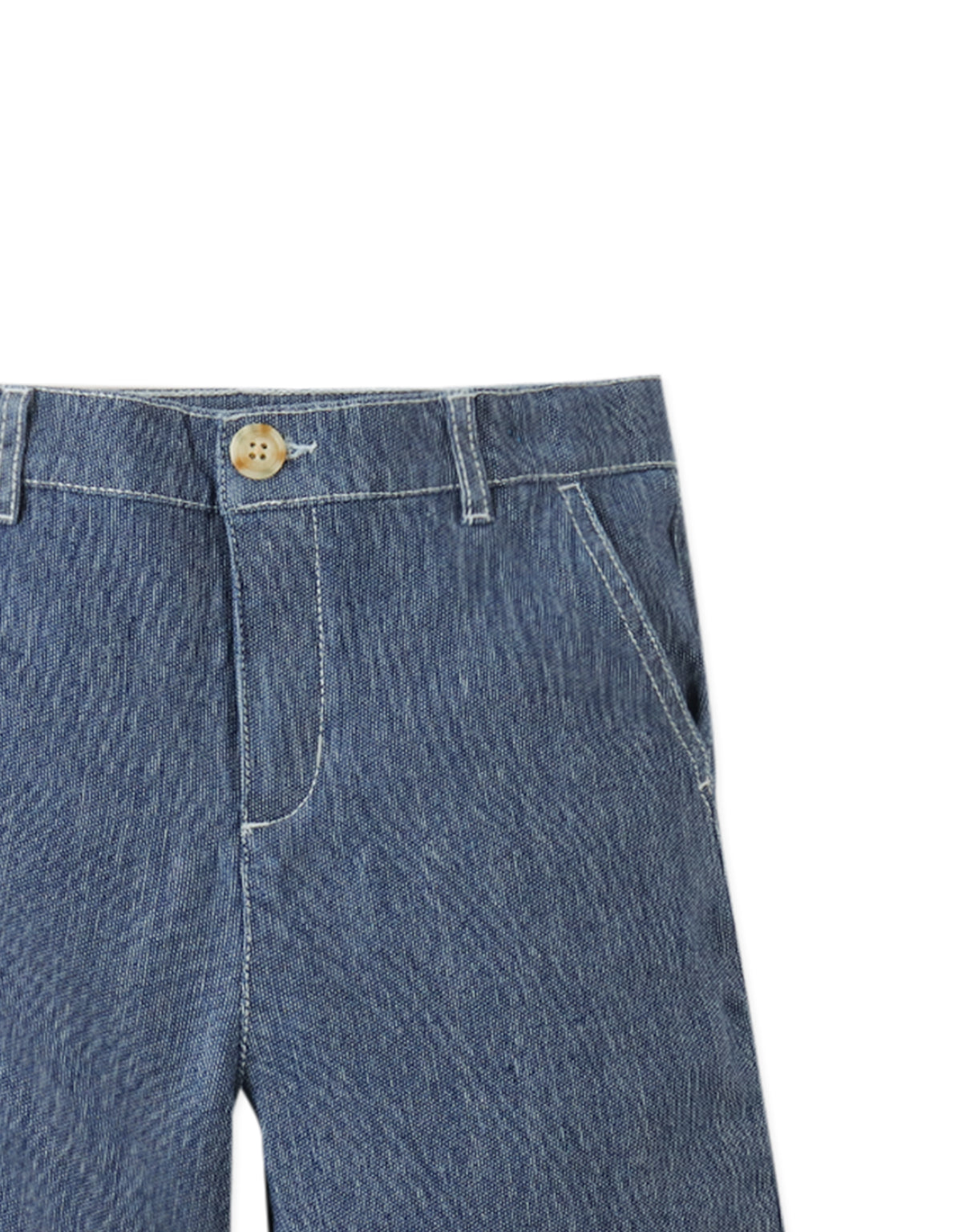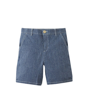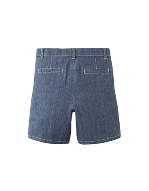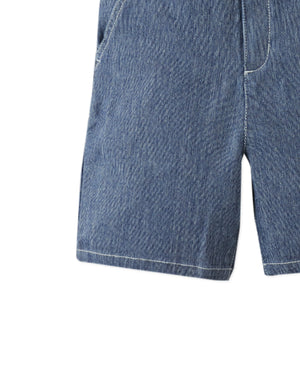 Crafted with a textured denim finish, these blue mid-washed dress shorts bring a polished yet laid-back appeal, perfect for any adventure.