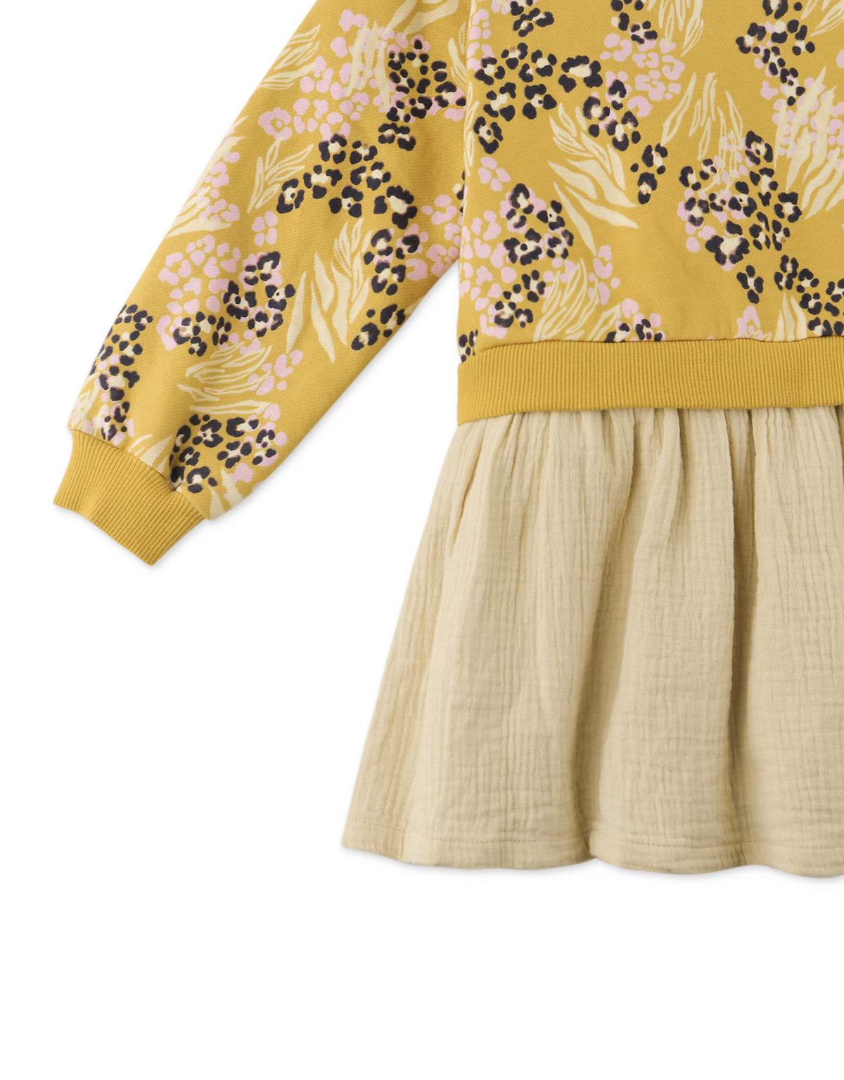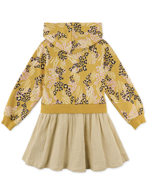 GIRLS ANIMAL PRINT HOODIE DRESS WITH LONG SLEEVES