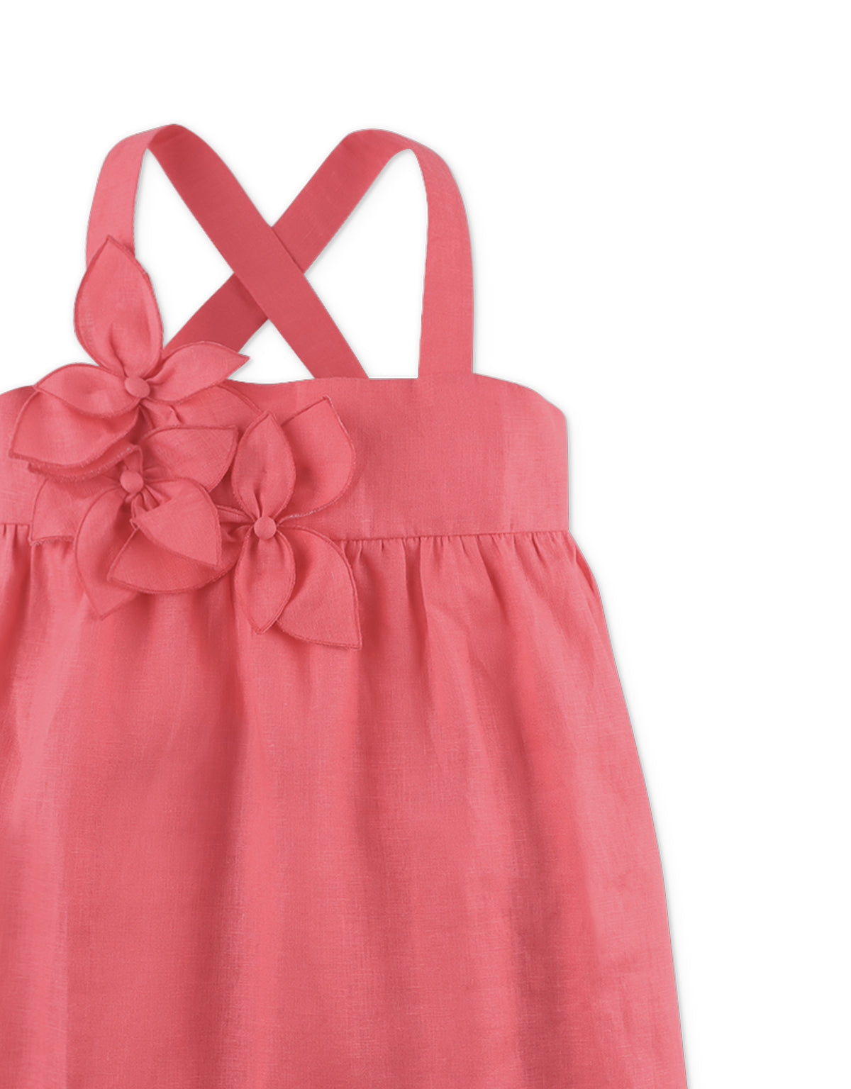 Dress your little one in our charming pink Anya dress, featuring delightful floral appliques, perfect for springtime adventures.