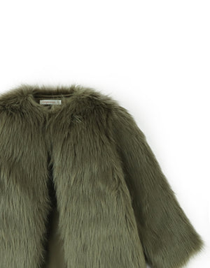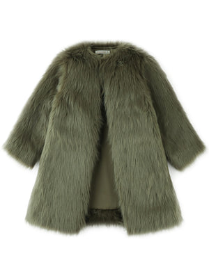 GIRLS COAT IN CRIMPED FRINGED POLY FUR