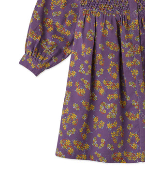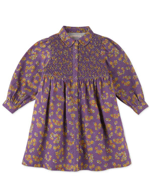 GIRLS DITSY PRINT DIAMOND SMOCKED DRESS