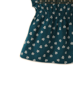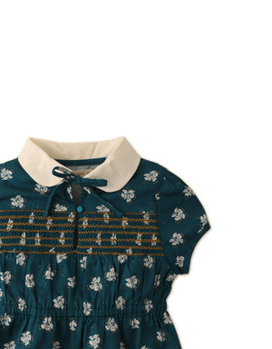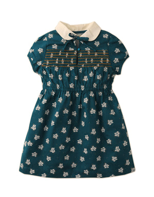 GIRLS DITSY PRINT DRESS WITH CONTRAST PETER PAN COLLAR