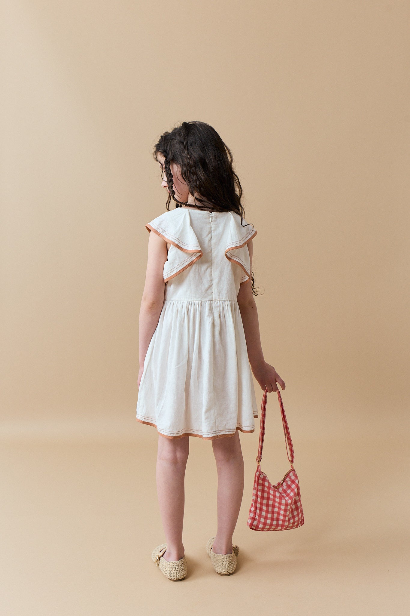 Twirl with delight! Our Fiona dress, adorned with cascading ruffles, adds a touch of playful flair that's perfect for making unforgettable adventures.
