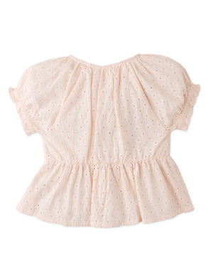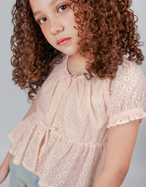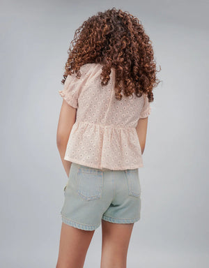GIRLS FLORAL COTTON EYELET V NECK FLOWY TOP