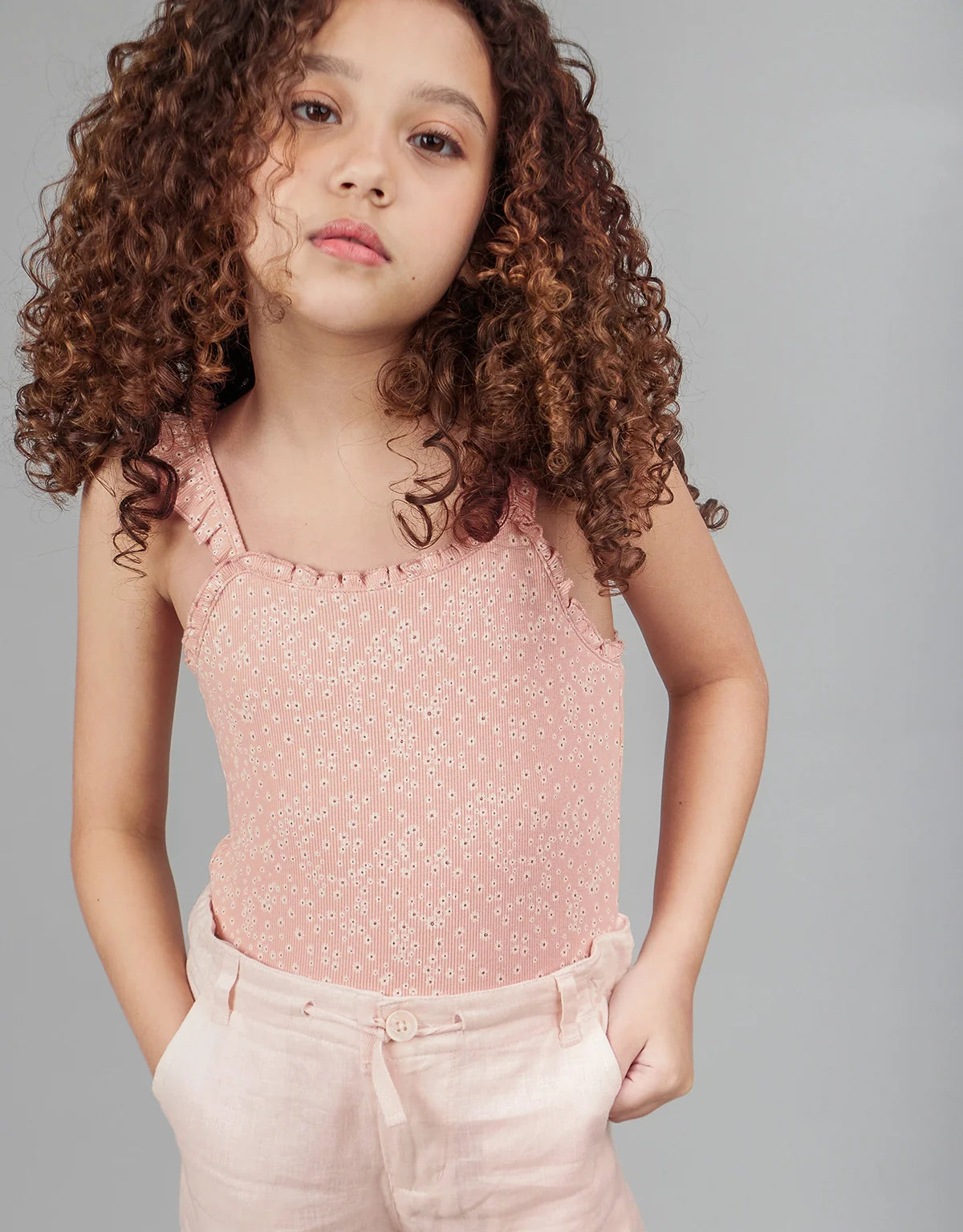 GIRLS FLORAL DITSY PRINT RIBBED BUTTERFLY SLEEVES BODYSUIT