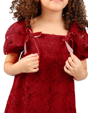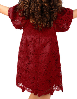 Crafted from high-quality lace, this red floral dress is a gorgeous addition to your little one's holiday outfits.