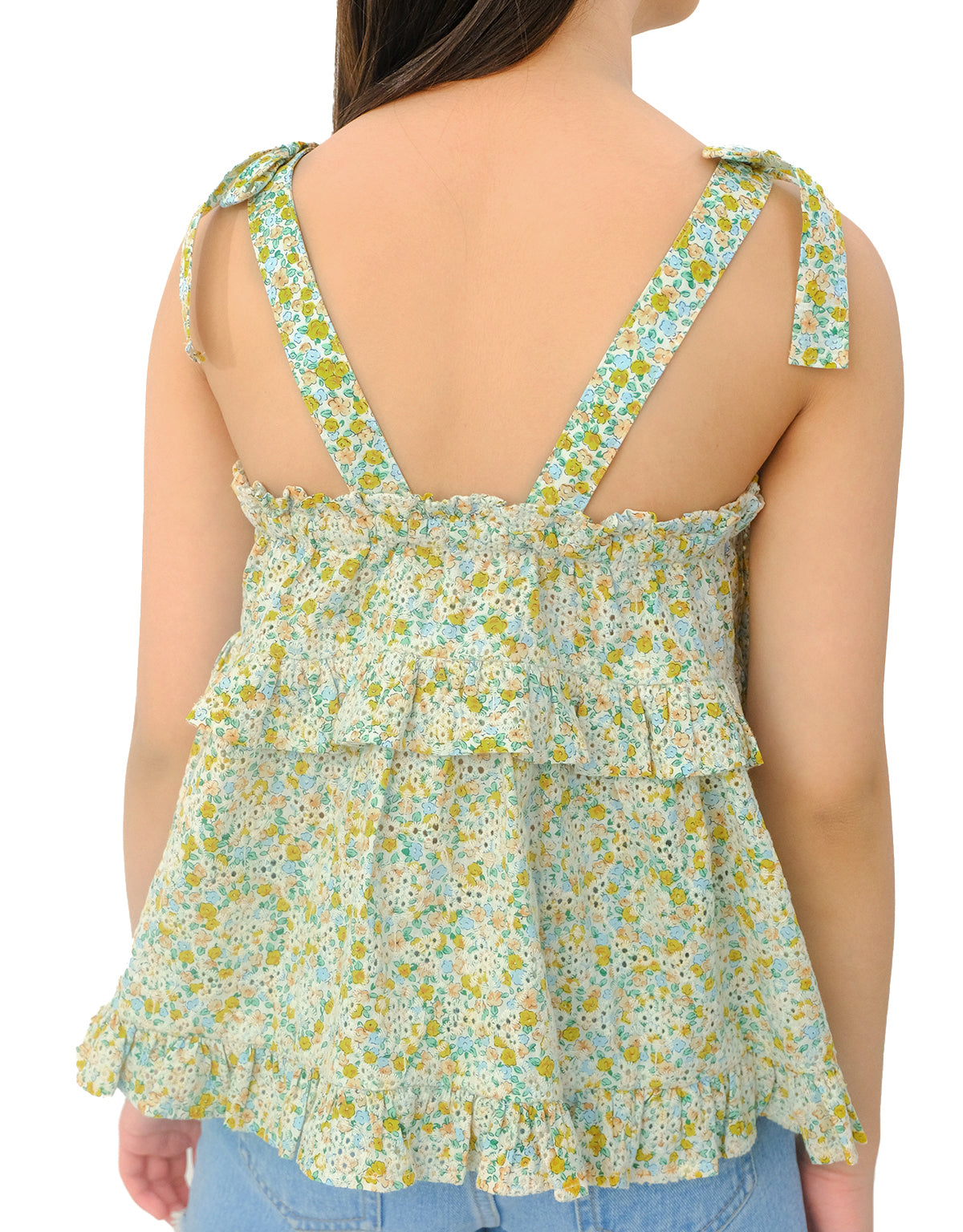 GIRLS FLORAL PRINT EYELET TIERED SWING TOP