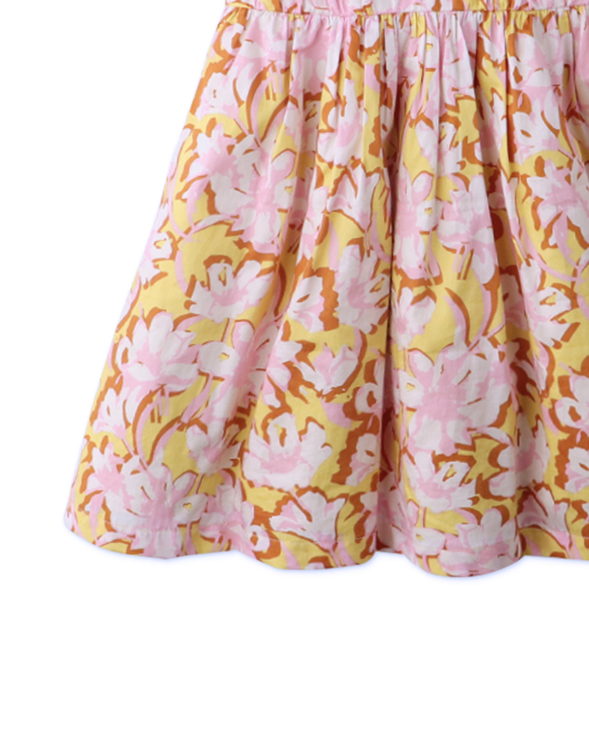 GIRLS FLORAL RUCHED NECK DRESS WITH BUBBLE SLEEVES