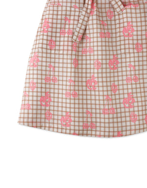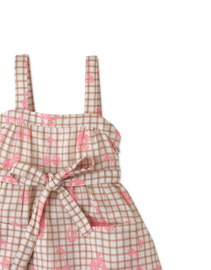 Embrace the summer with our apron-inspired strappy dress designed with adorable grid and fruit prints!