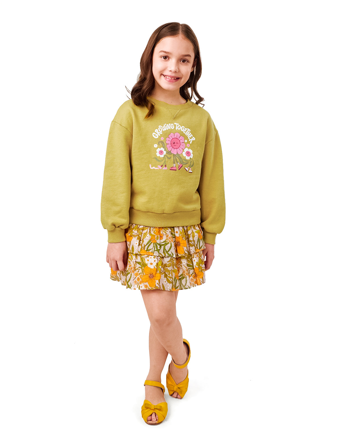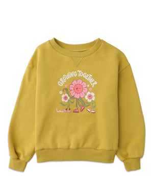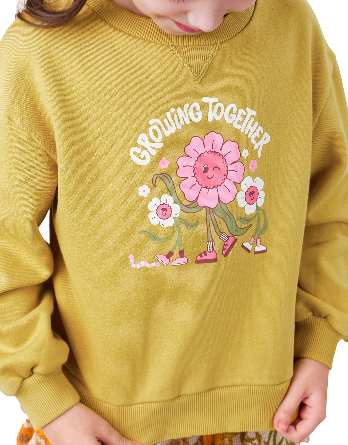 Keep her cute and cozy with this oversized pullover, embellished with an adorable "growing together" print!