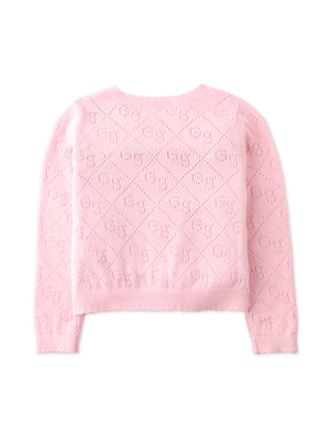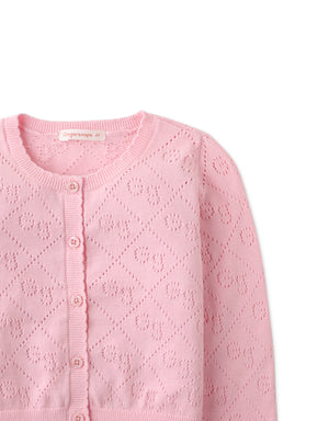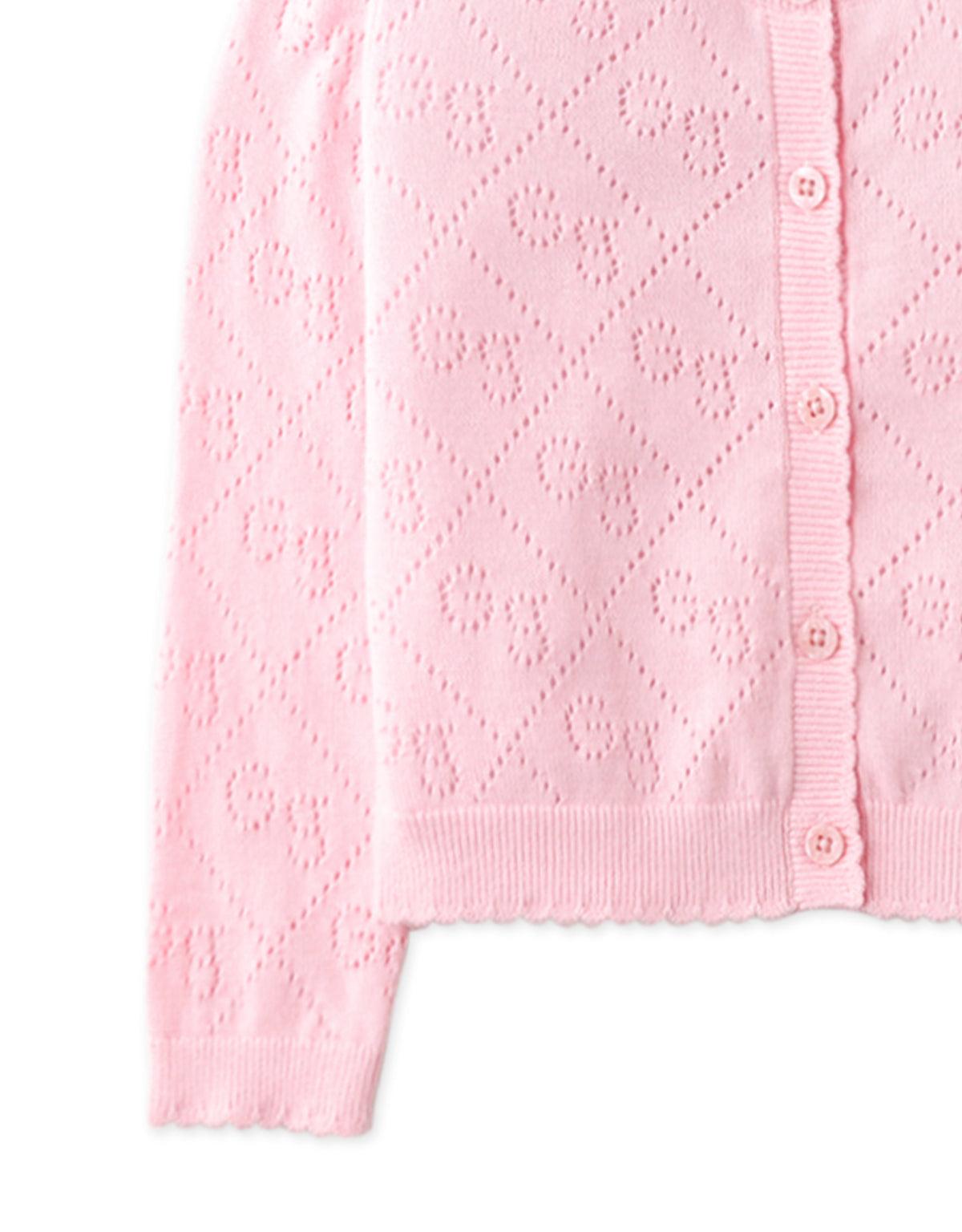 This knit pointelle cardigan in baby pink brings elegance and charm to every outfit!