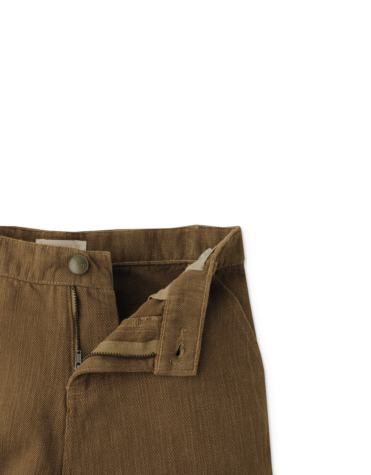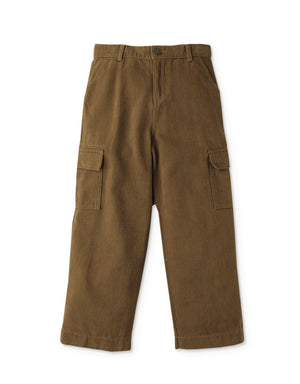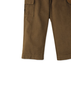Playtime is more fun with these high-rise cargo pants in earthy brown denim!