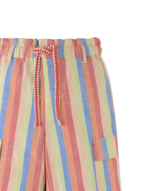 The Iris stripey pants feature a vibrant mix of colors, adding a playful touch to her wardrobe. Made with comfy, breathable fabric, they're perfect for all her adventures.