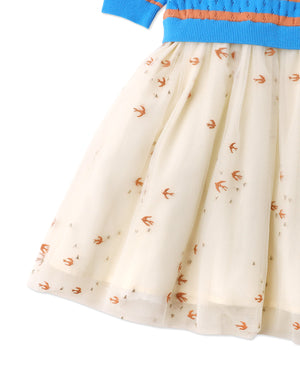 GIRLS KNITTED BODICE DRESS WITH BIRD EMBROIDERED SKIRT