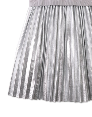 GIRLS KNITTED BODICE DRESS WITH METALLIC PLEATED SKIRT