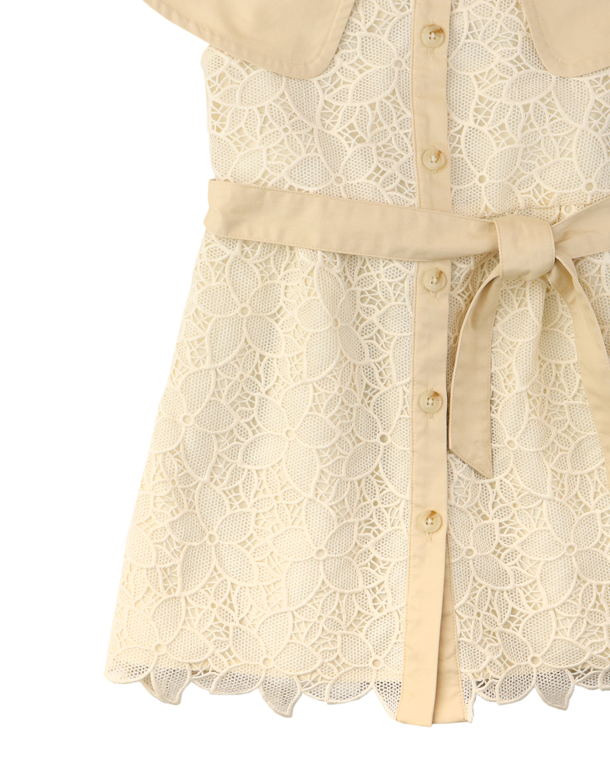GIRLS LACE COAT DRESS WITH CAPE AND SASH